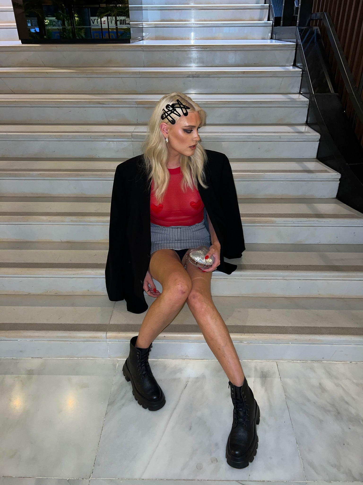 Angelica Sophie is an influencer, makeup artist and model from Norway. We immediately fell in love with Angelica's style, which is glamorous and bold to say the least. We are exceptionally proud to work with Angelica, who has taken an active role in supporting and promoting the normalization of all genders while being a trans woman. In the photos, Angelica styles two of her favorite pieces from JoDis!