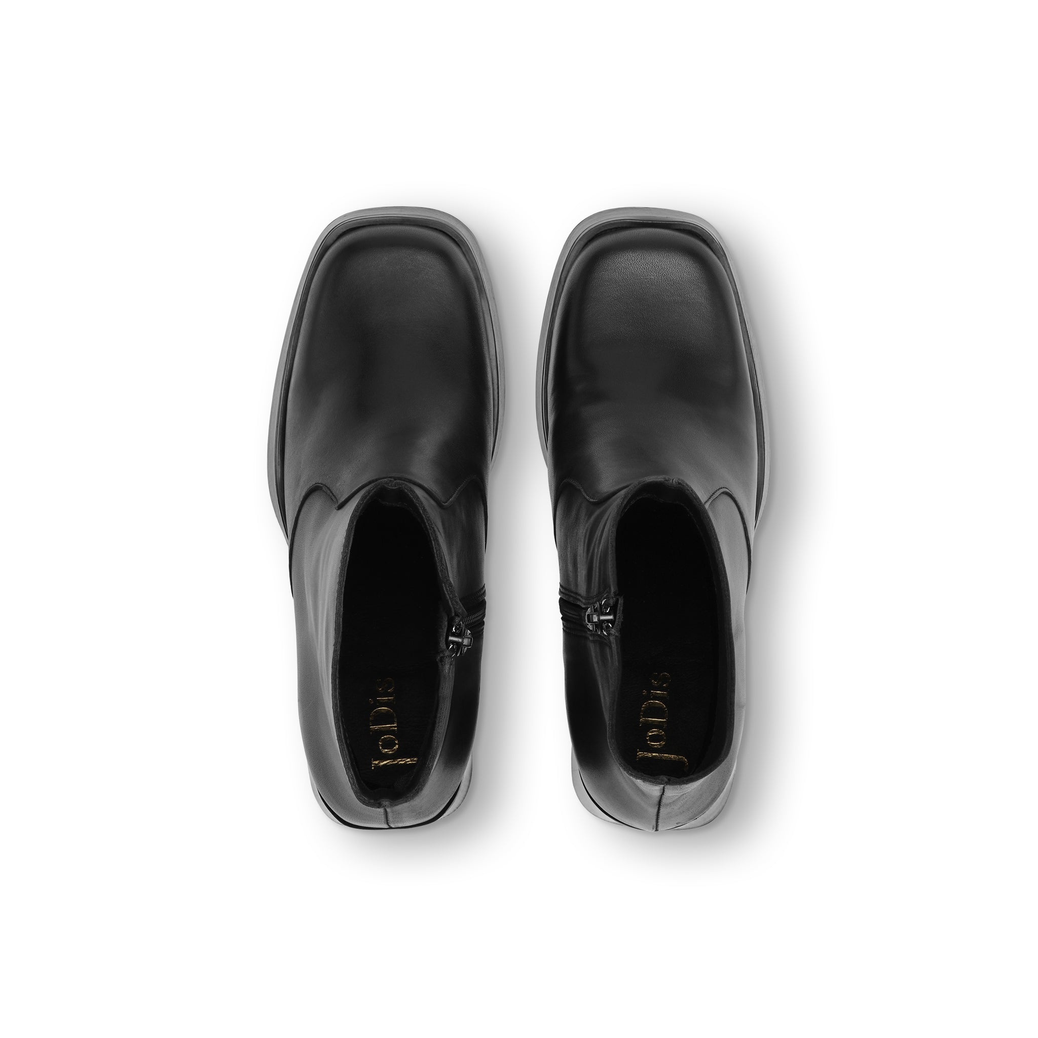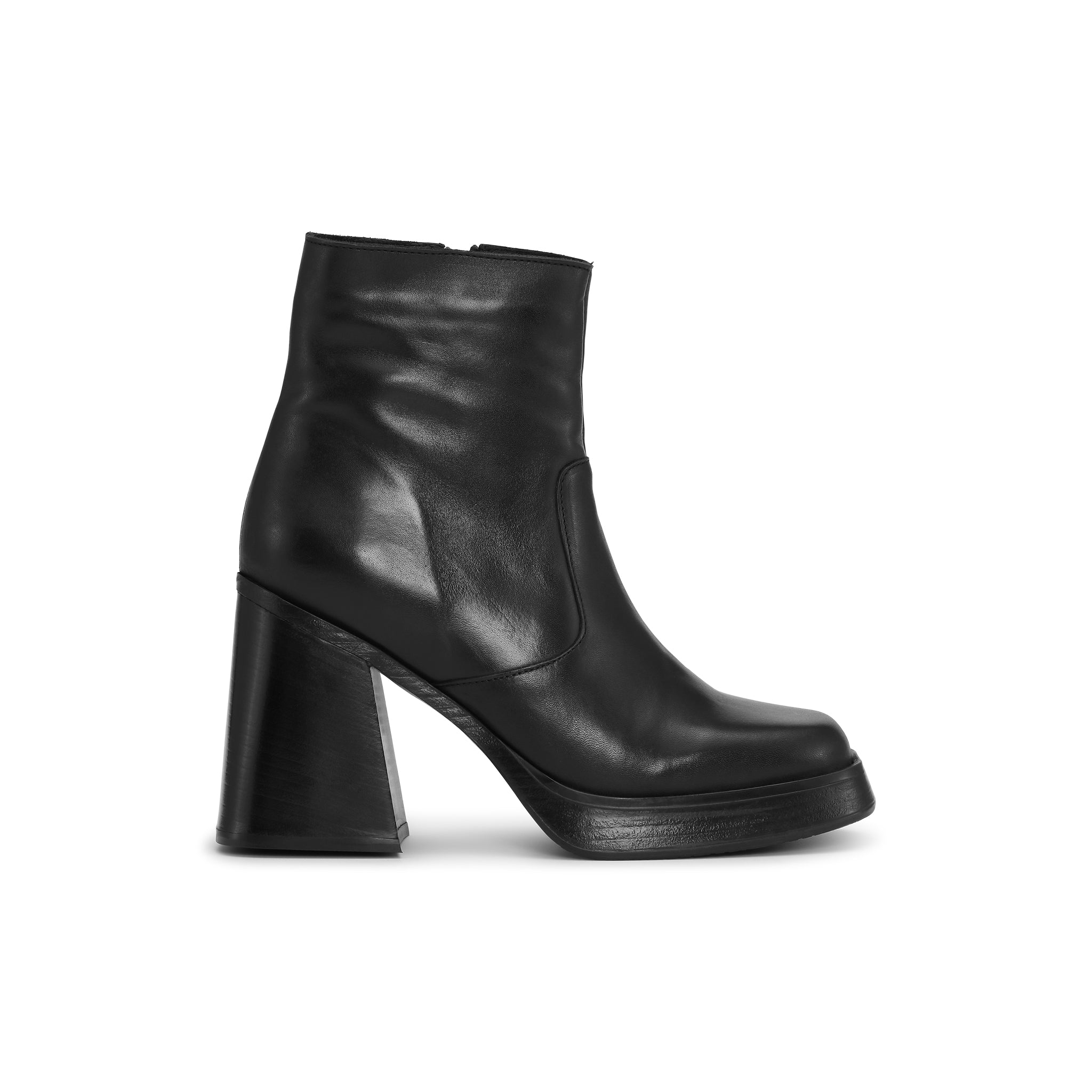 The Astana Ankle Boot in black leather combines classic design with cool details. With square