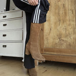 Timeless elegance meets modern edge. Derma is the boot you wear to feel chic from morning to night. Made from soft cognac suede leather that elegantly hugs the ankle, and designed with a round toe that gives a feminine and timeless expression. The 7 cm high heel gives you the perfect lift, without compromising on comfort.